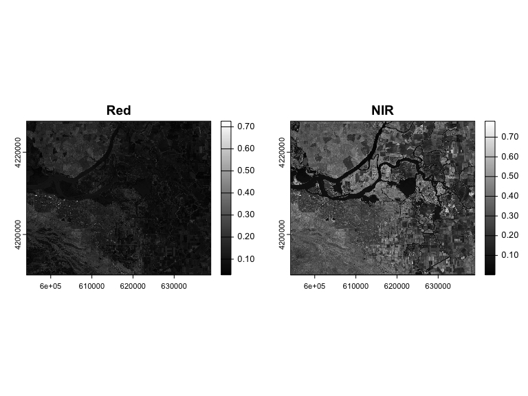 ndvi <- lapp(landsat[[c(5,4)]], fun=fndvi) # NIR, Red