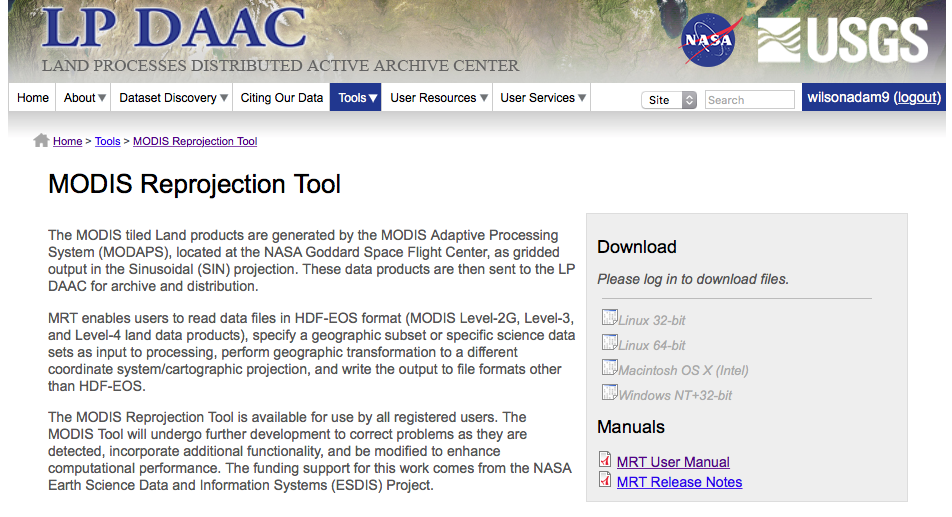Available at lpdaac.usgs.gov/tools/modis_reprojection_tool.