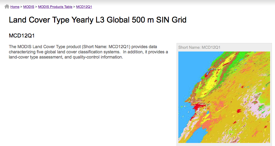 MODIS/Terra - Instrument/SensorSurface Reflectance - Geophysical Parameter8-Day - Temporal ResolutionL3 - Processing LevelGlobal - Global or Swath500m - Spatial ResolutionSIN Grid - Gridded or NotV005 - Collection Version